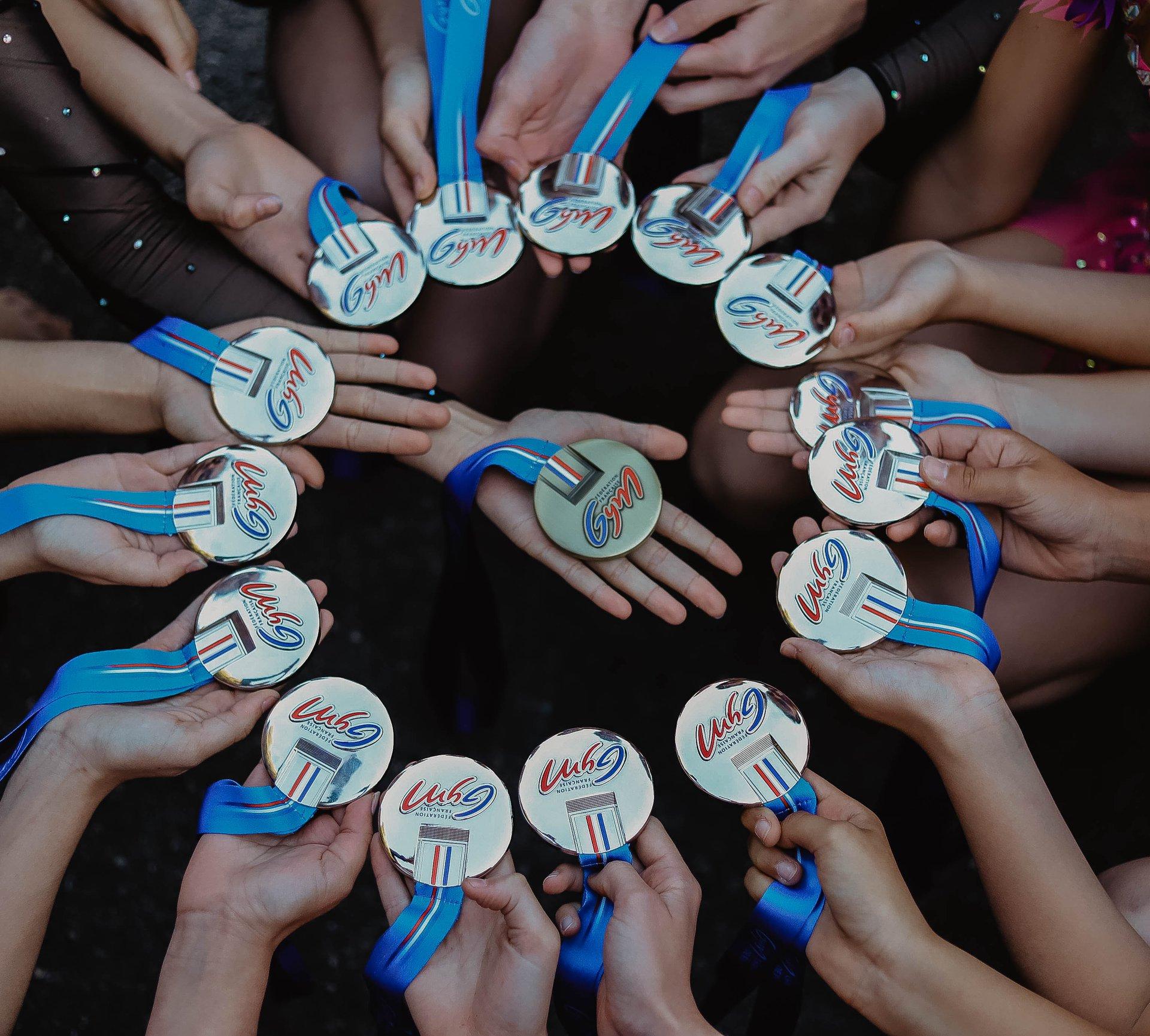 Sport typiquement féminin, la Gymnastique Rythmique est un mélange entre la danse et la gymnastique est accompagné de manipulation d'engins : corde, cerceau, ballon, massues, ruban.