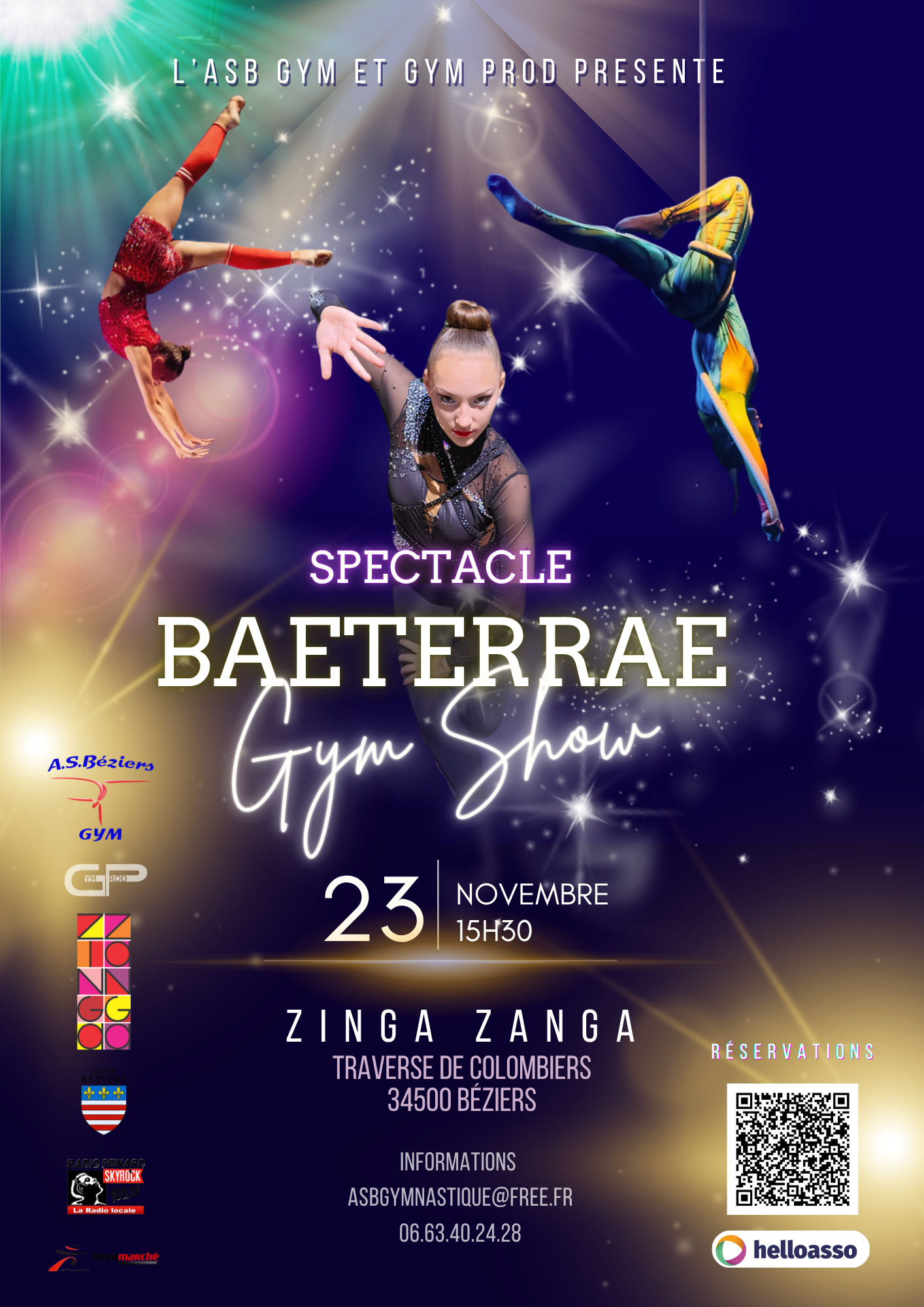 Date : Dimanche 23 novembre Lieu : Salle Zinga Zanga – Traverse de Colombiers – 34500 Béziers Horaire : 15h30 (ouverture des portes à 14h30)